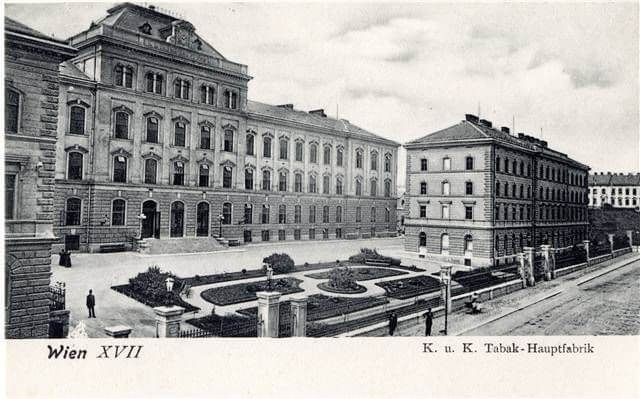 Die Tabakregie zieht in den 9. Bezirk in die Porzellangasse 51. Sie verfügt über 36 Fabriken, neun davon im Gebiet des heutigen Österreich, die anderen in den Kronländern der Monarchie.