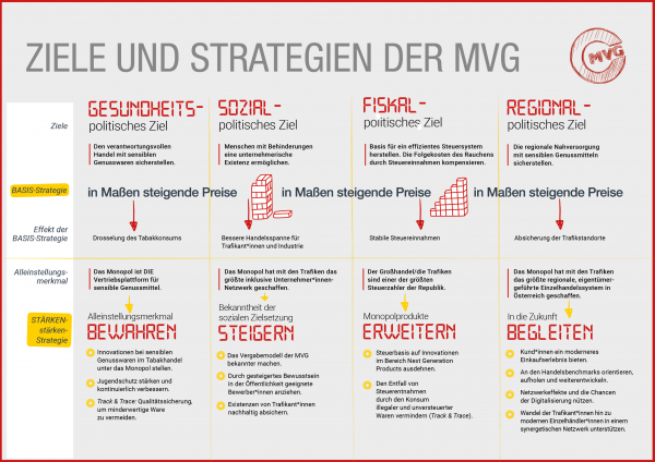 Die Aufgabe der MVG ist es, Innovationen im Bereich der sensiblen Genusswaren im Tabakhandel unter das Monopol zu stellen.